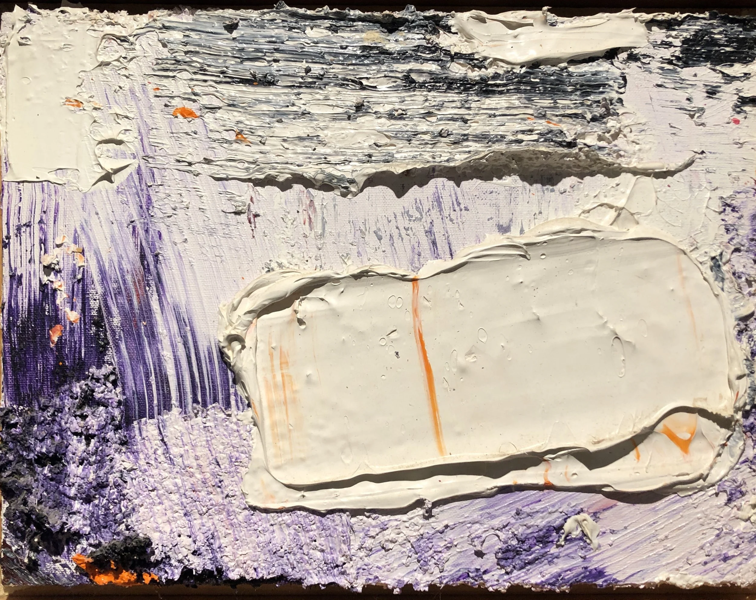 acrylic, woodchips on canvas, trowel