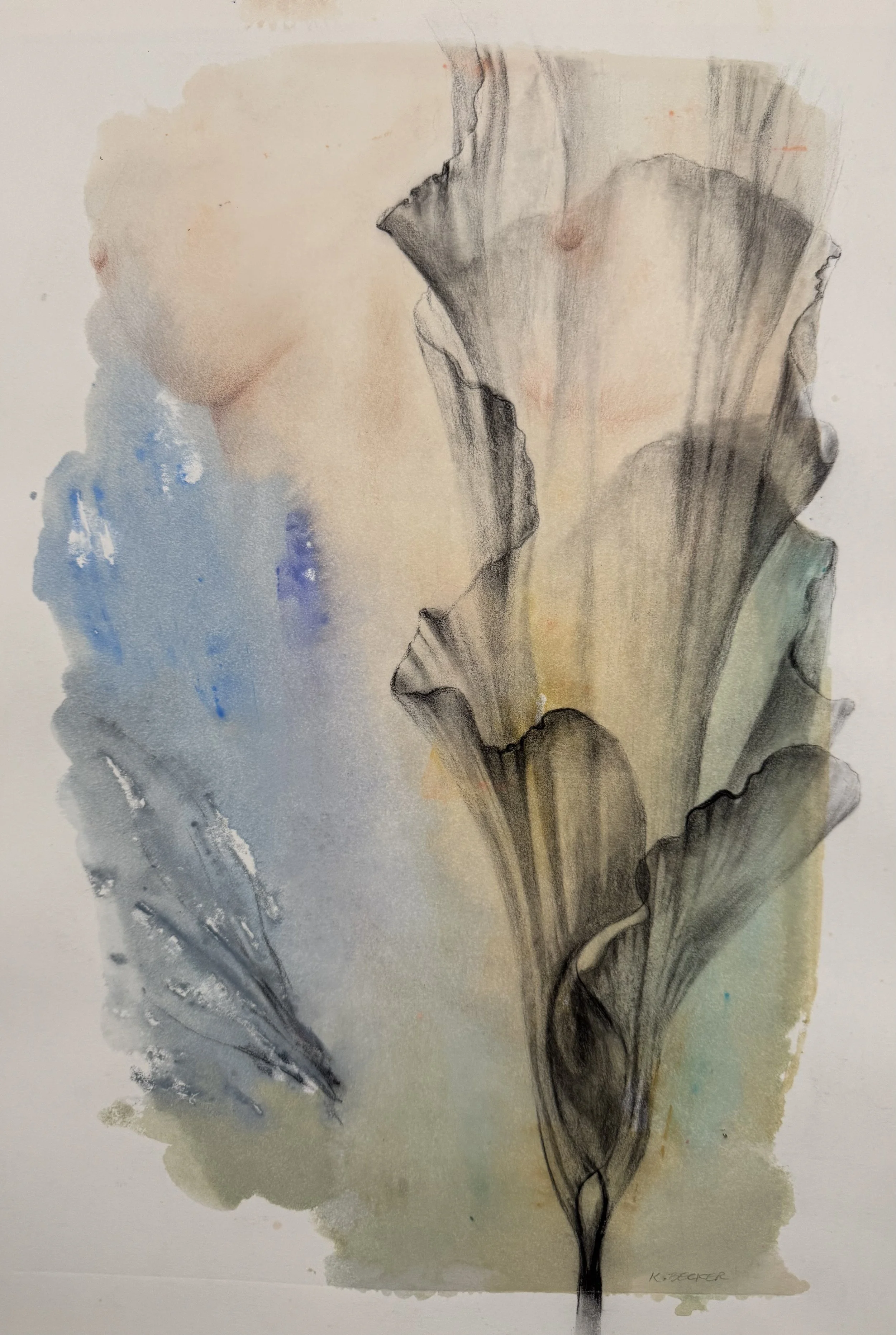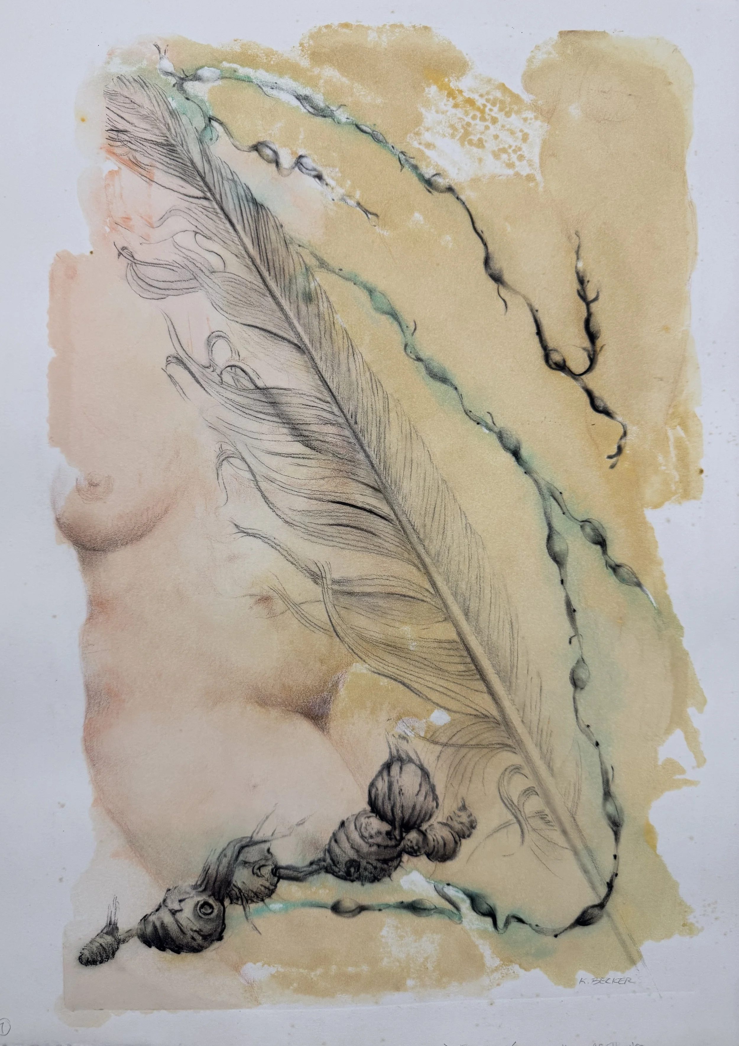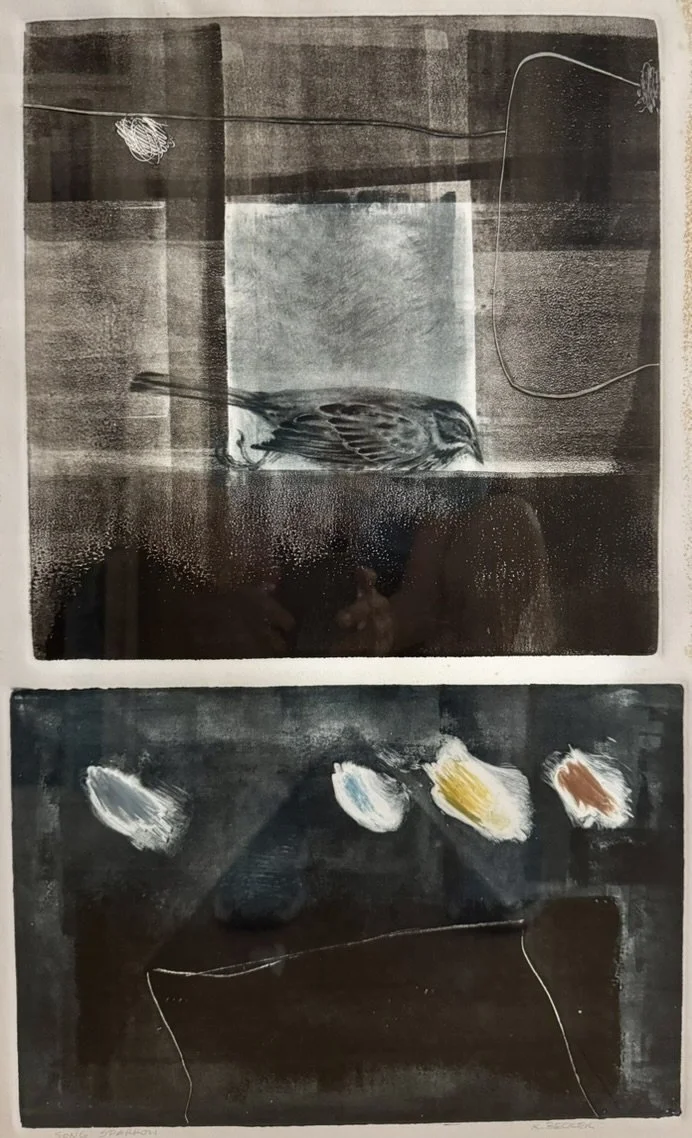 During the last 45 years Becker has experimented with abstraction and realism using water soluble oils, pastels, transparent watercolor, acrylics, and mixed media mono-prints.